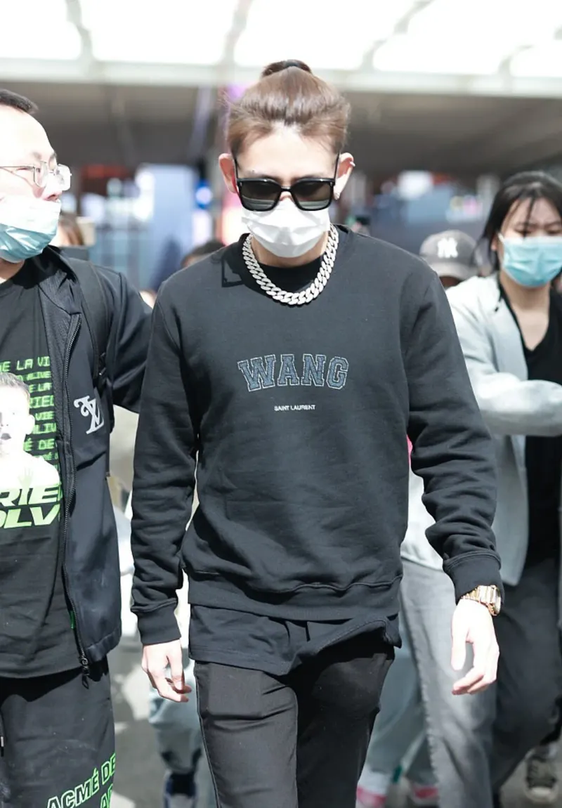 王琳凯小辫儿粗链潮流时尚机场照图片视觉相似