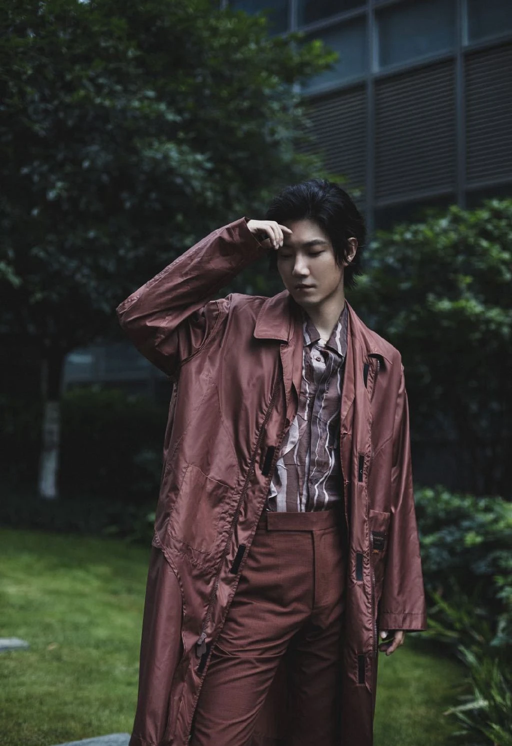 王晰暗红西装帅气写真图片