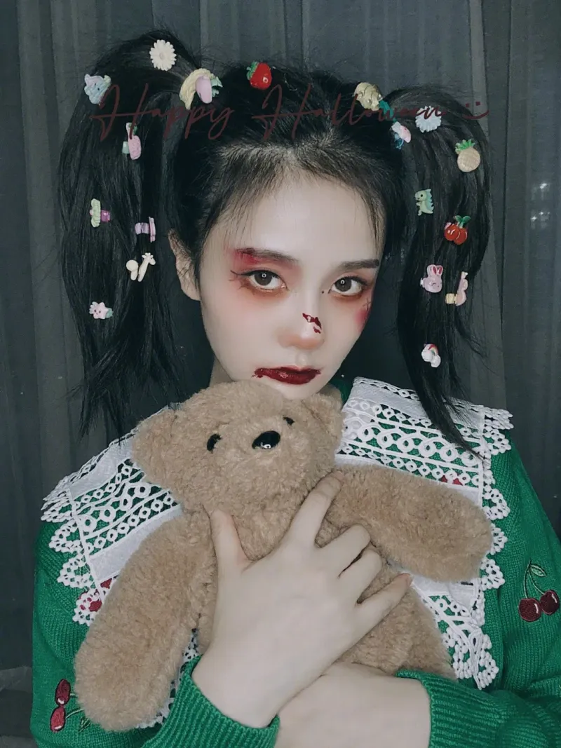 白鹿双马尾万圣节妆容写真图片视觉相似