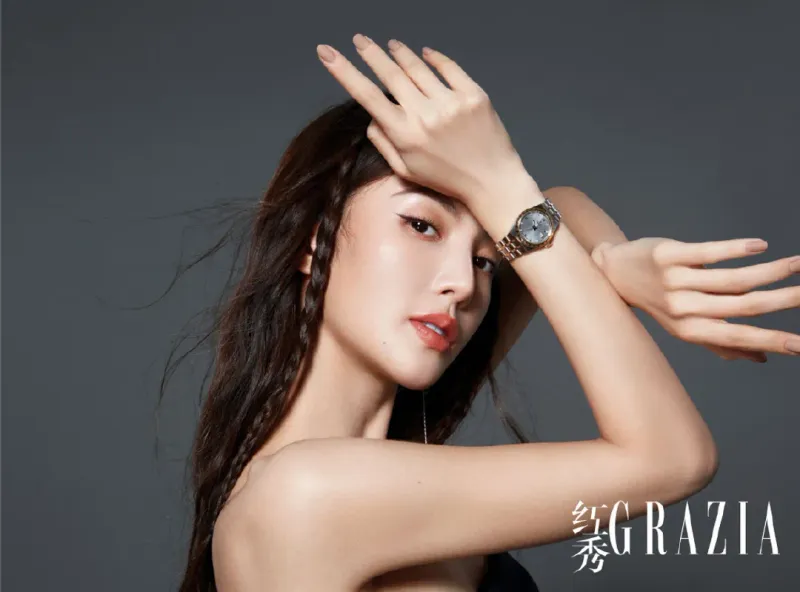金晨双麻花辫造型性感杂志写真视觉相似