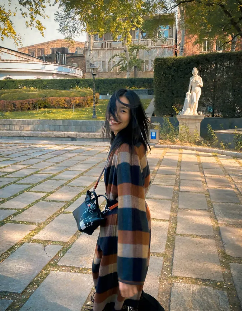 刘雯格纹外套时尚魅力美照图片第2张