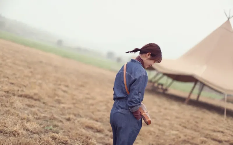 秋天原野美女背影图片