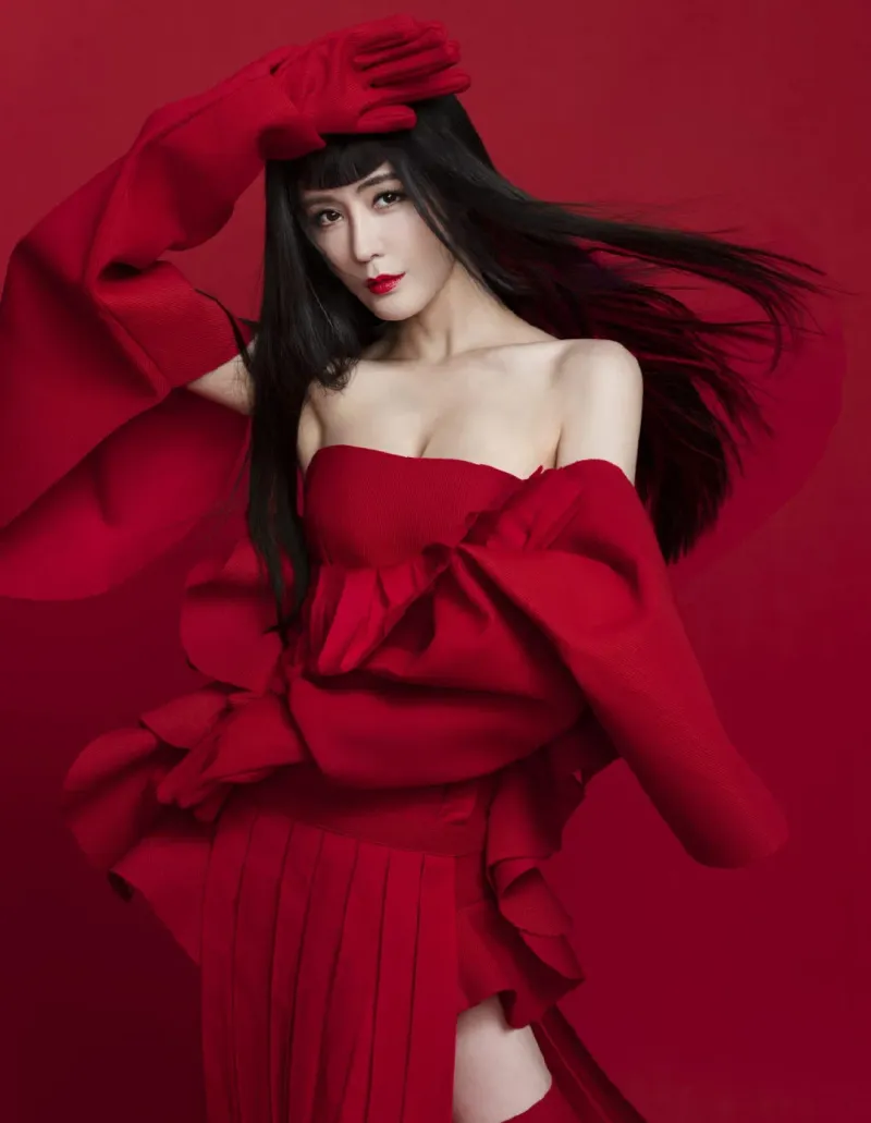 鞠婧祎美艳红裙写真图片