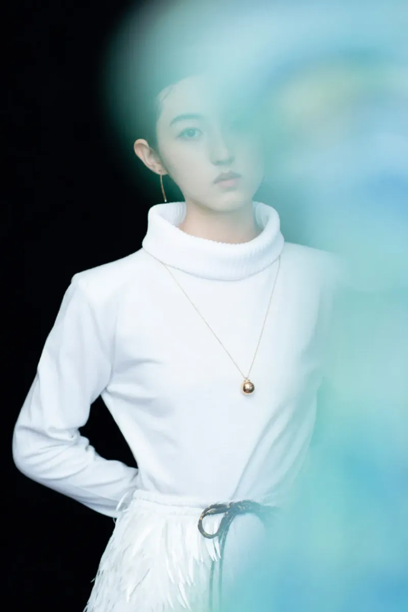 高领白色毛衣