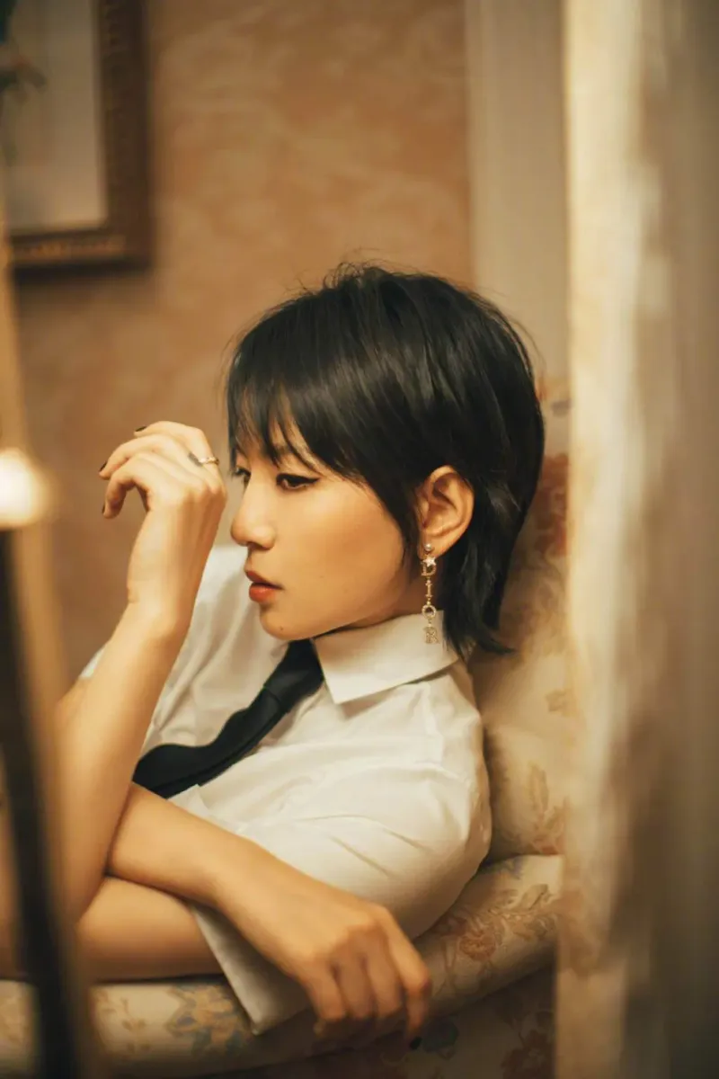 周笔畅黑白OL伞裙优雅写真图片第8张