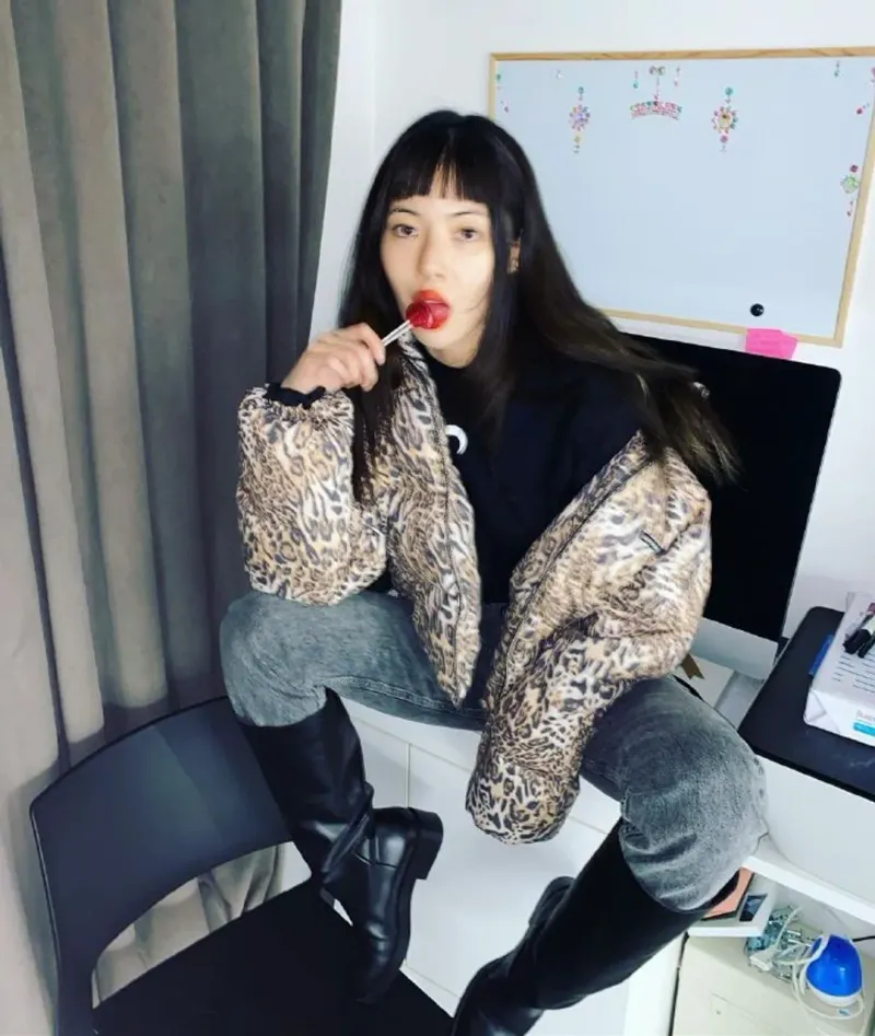 泫雅豹纹外套性感撩人美照图片