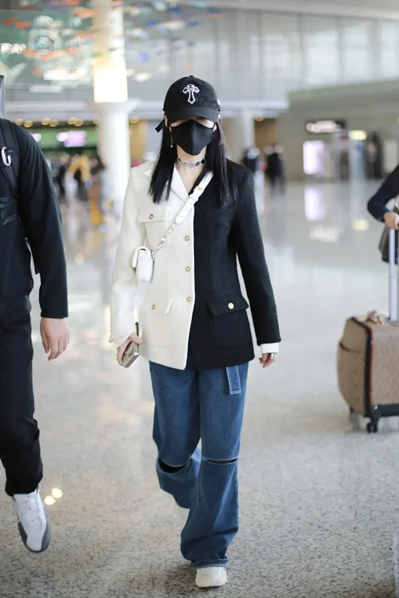 张韶涵拼色西装时尚帅气机场照图片第4张