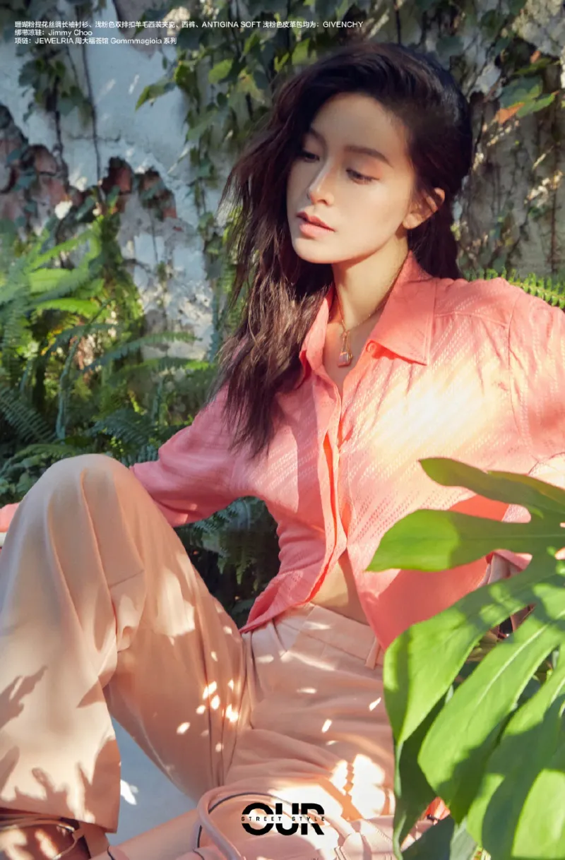 文咏珊浅粉色西装秋日写真图片