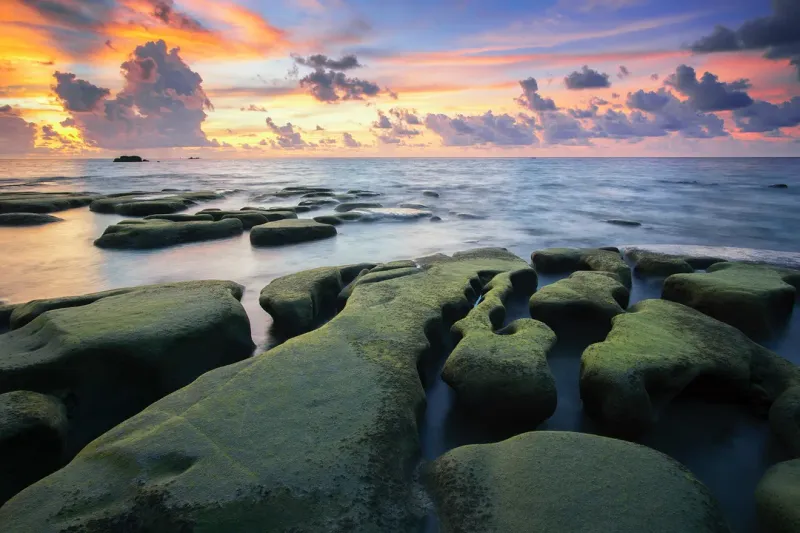 一组海滩上的岩石图片