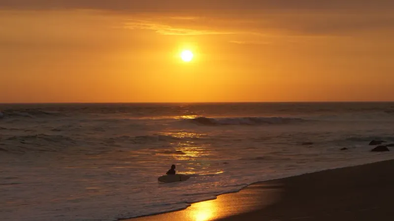 沙滩海面日落图片