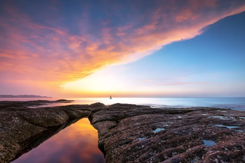 蓝色海岸日落图片