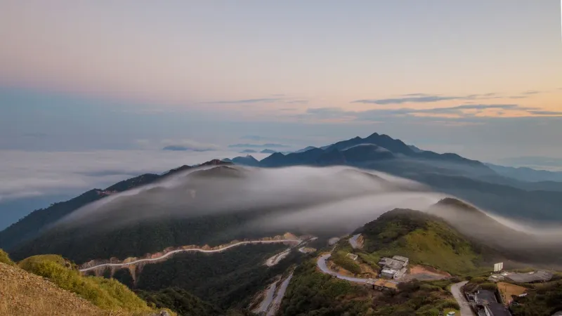 雾气笼罩着的山峰图片