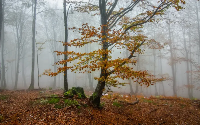 雾气弥漫的树林图片