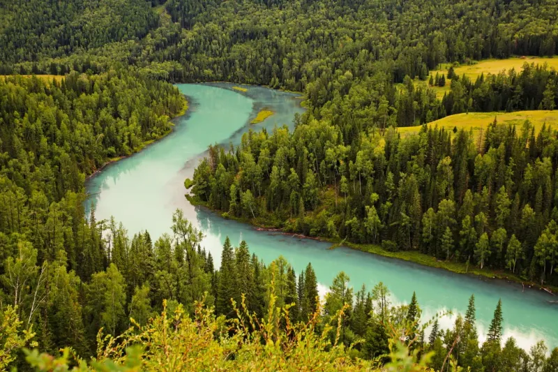 一组新疆喀纳斯月亮湾自然风景图片