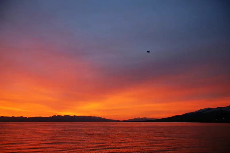 海上日落火烧云图片