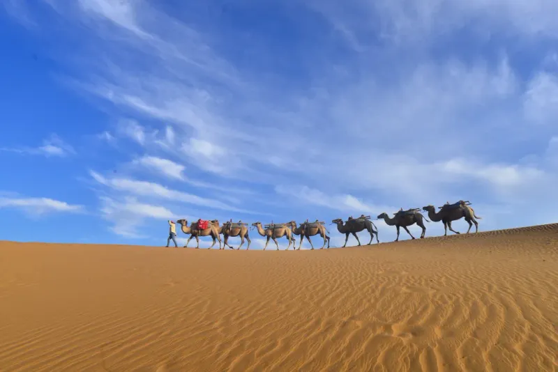 沙漠骆驼队伍摄影图片