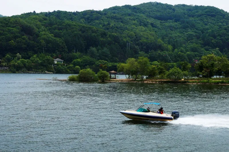 湖面泛舟图片