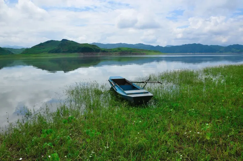 湖泊小船图片