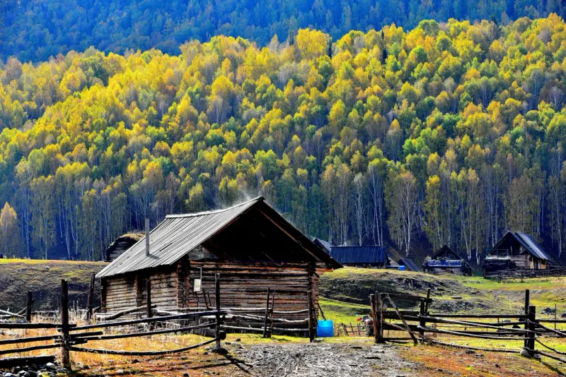 美丽的禾木乡风景图片
