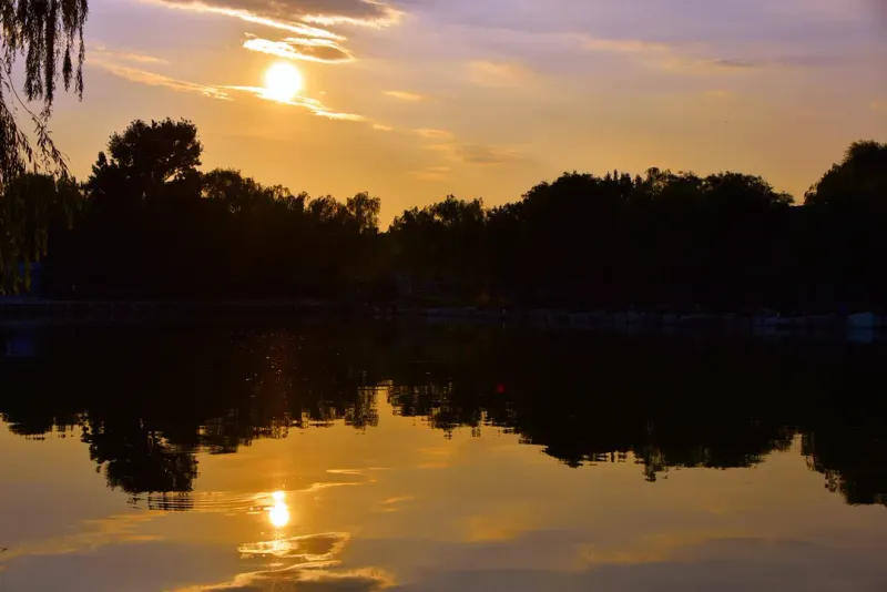 黄昏日落倒影图片