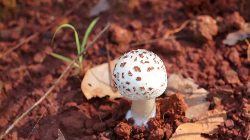 地面红色毒蘑菇图片