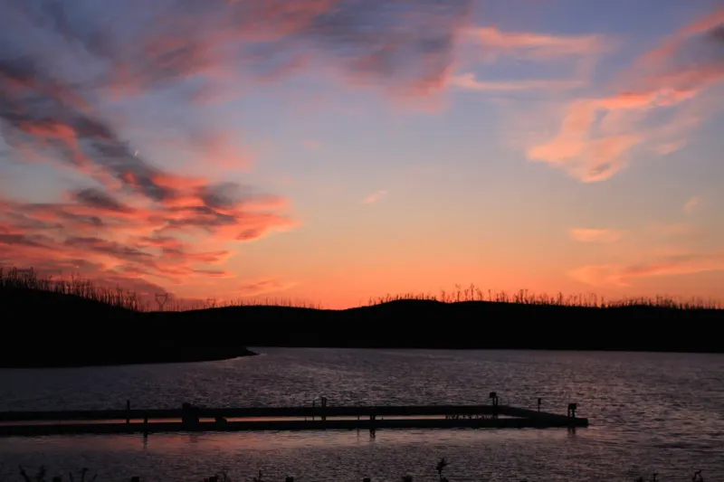 傍晚湖面日落图片