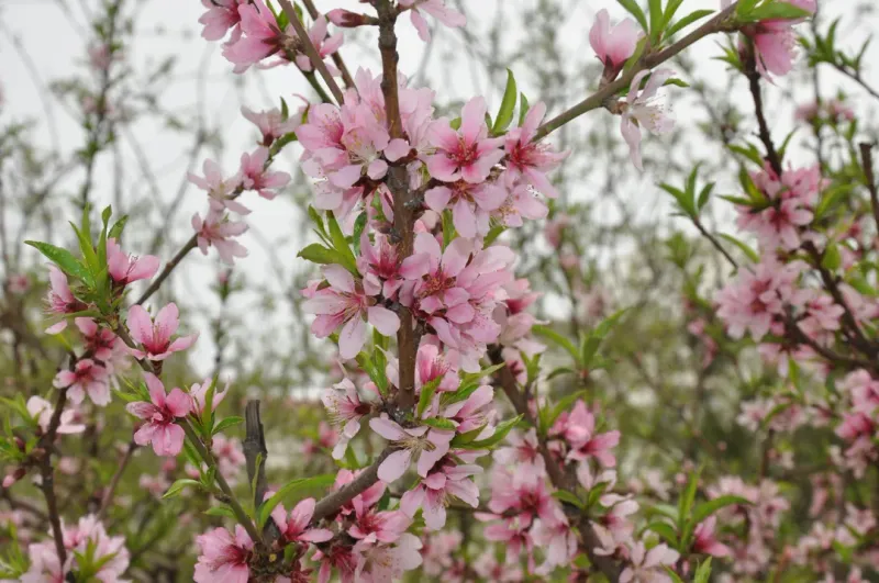 云南玉龙雪山灿烂桃花风景图片