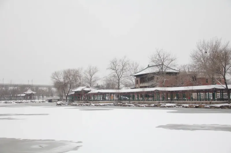 天津北宁公园雪景图片