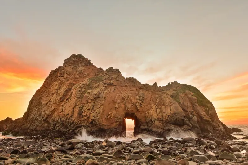 一组唯美黄昏海岸礁石图片