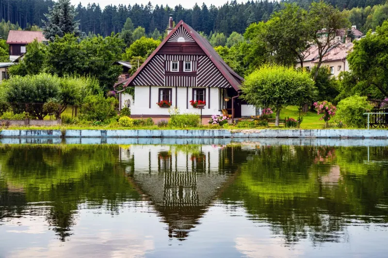 山水湖泊房子图片
