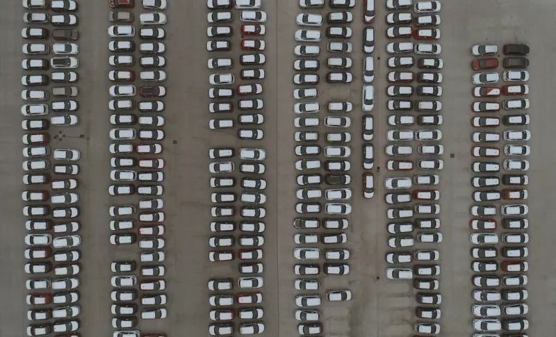 从高空中鸟瞰停车场图片