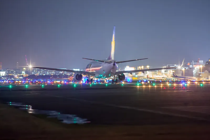夜晚飞机场准备起飞的飞机图片