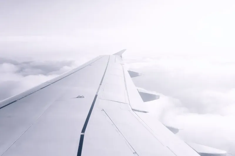 高空飞行的飞机羽翼图片