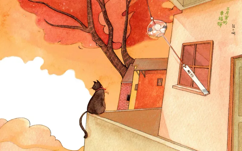 三月里的幸福饼插画图片