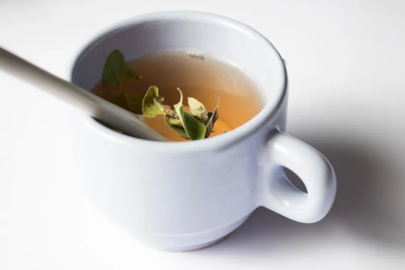 一杯茶和一个勺子图片