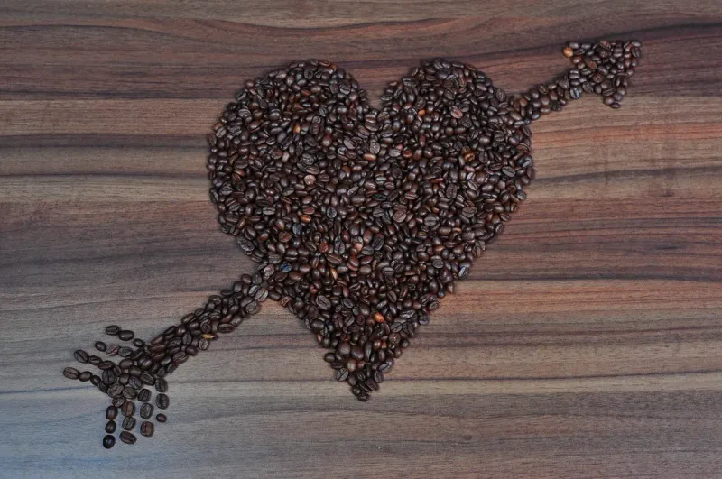 咖啡豆拼成的爱心形状图片