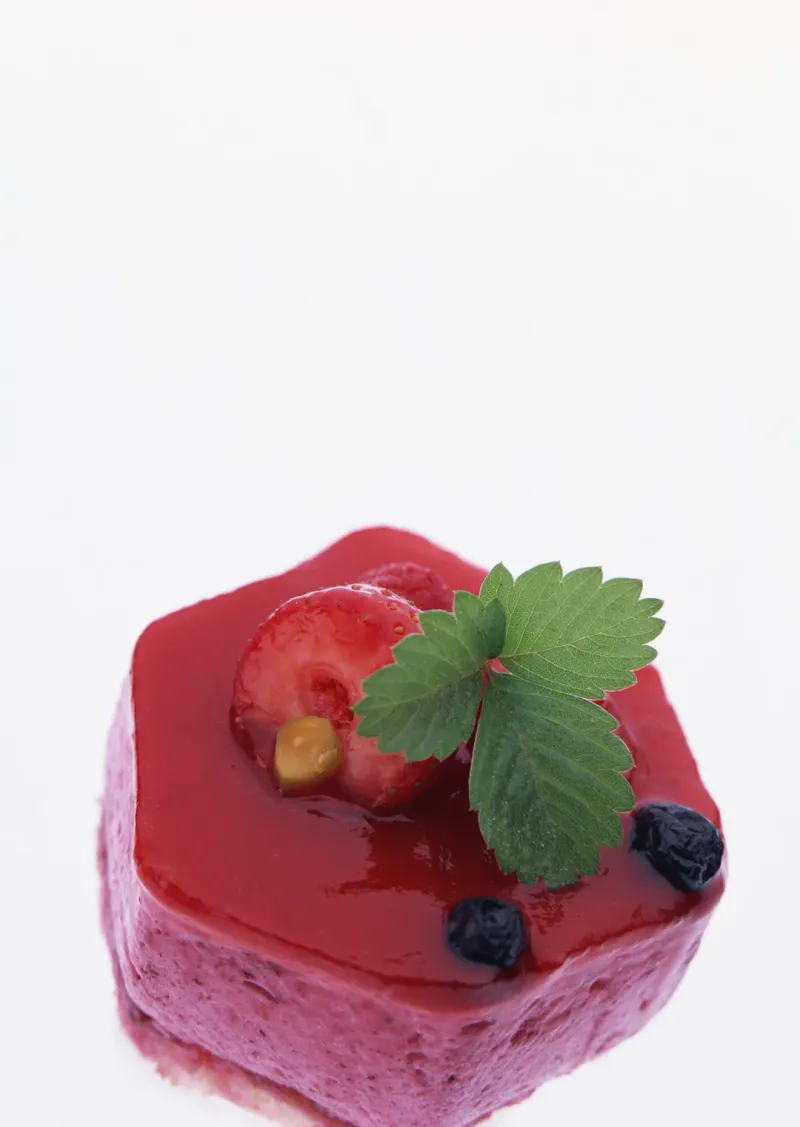红色水果酱蛋糕块图片