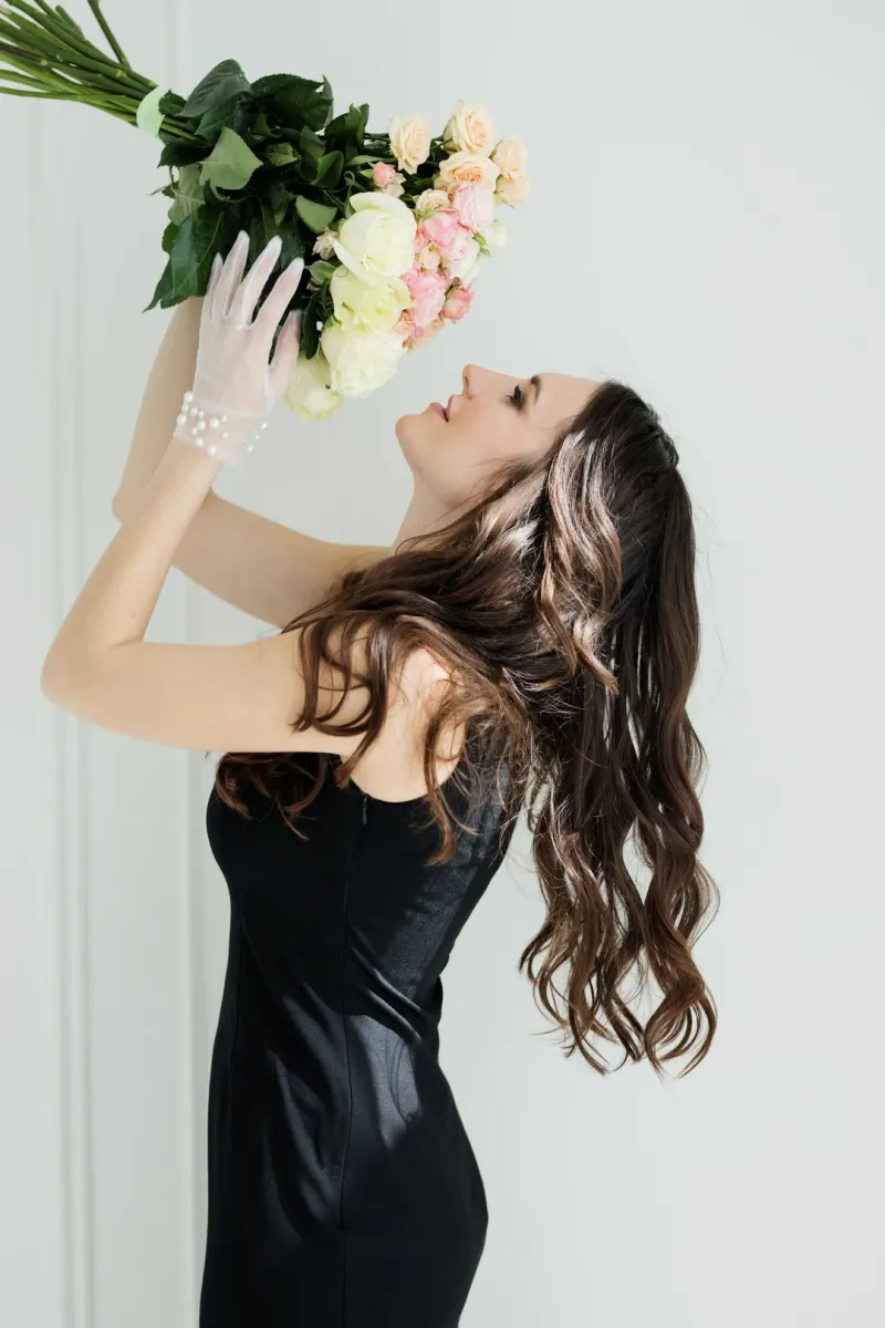 美女手捧花束写真图片