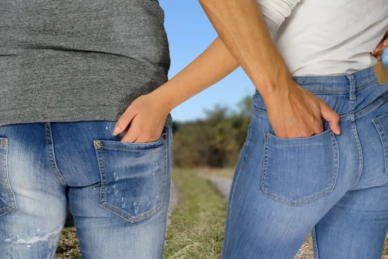 情侣牛仔裤臀部特写图片