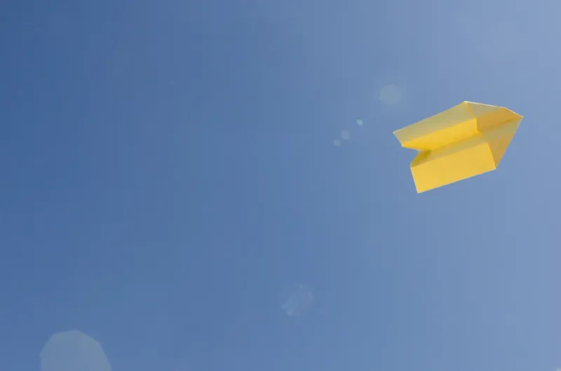 在飞的黄色纸飞机图片