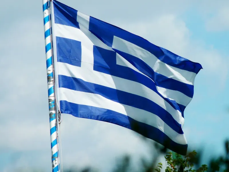 随风摆动的希腊国旗图片第张