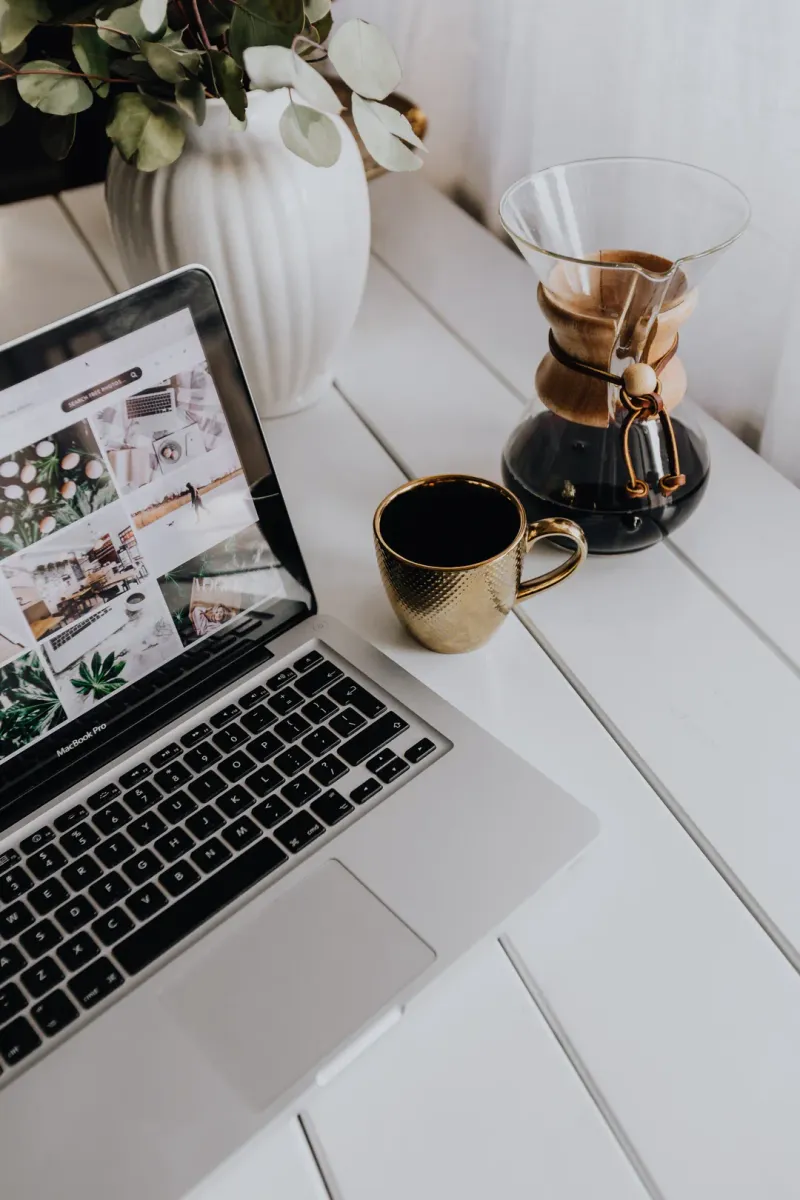 一组磨制咖啡与苹果电脑的图片
