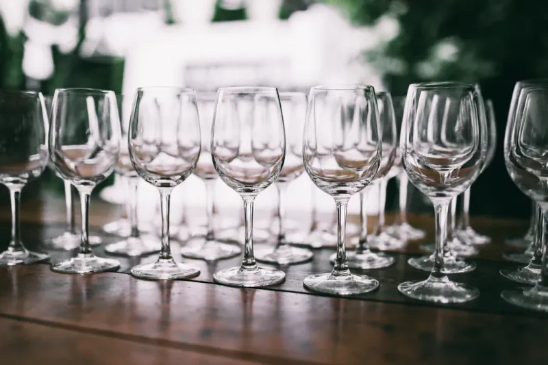 一组玻璃空酒杯的特写图片