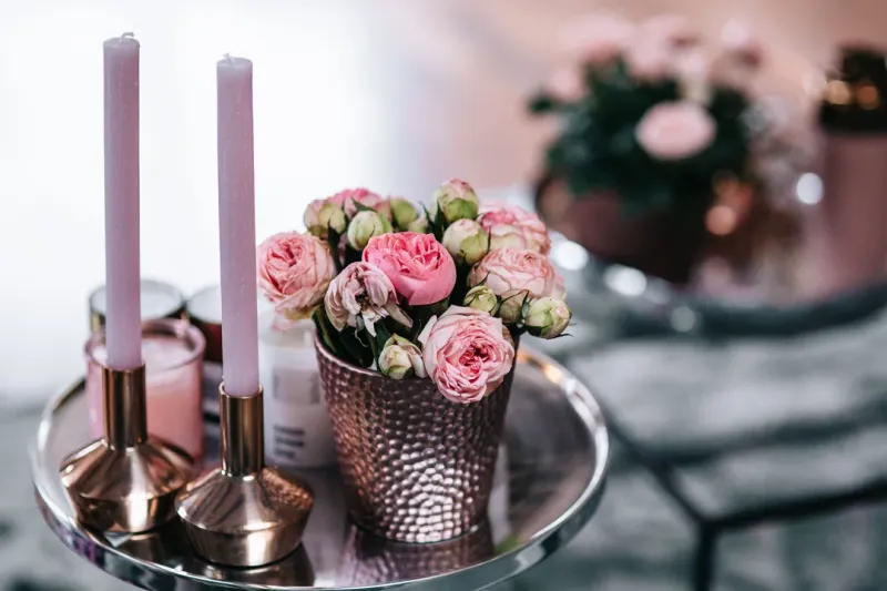 鲜花跟香薰蜡烛摆放的图片