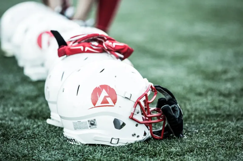 一组橄榄球运动员头盔图片
