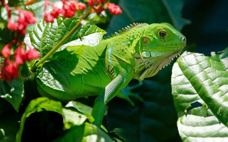 分享一组分类动物图片给大家,图中的冷血动物蜥蜴会点缀你的电脑桌面,美化自己的心灵! 这张图片展示了一只美丽的鲜艳色彩的蓝斑鸟在花园中。这种鸟因为其独特的外观和鲜艳的彩衣而备受喜爱,它有一个红色的头部,其余部分则是黄色和绿色斑点。这只鸟在花园中寻找食物或寻觅清新空气,给人们以一种与自然相处的美好场景。