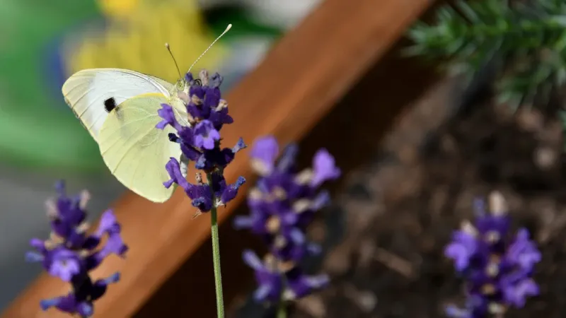 高清粉蝶图片大全,分享一组蝴蝶昆虫图片给大家,图中的桌面壁纸会点缀你的电脑桌面,美化自己的心灵! 这张图片显示了一只黄色的高清粉蝶正在飞过紫色花朵。紫色花朵是弯曲的,可能是用来固定或装饰的,而不是生长自然的状态。花朵看起来美丽,提供了一个明亮的背景,使得高清粉蝶更加突出。高清粉蝶在飞行时展现了其可爱和儿童的特点。整体来看,这张图片表达了自然界中生命的美好,以及动植物间的互动。