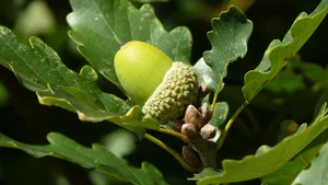 树枝上青涩的橡子果图片