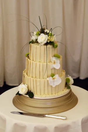 白色巧克力片装饰蛋糕图片