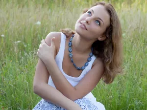 草地清新美女图片